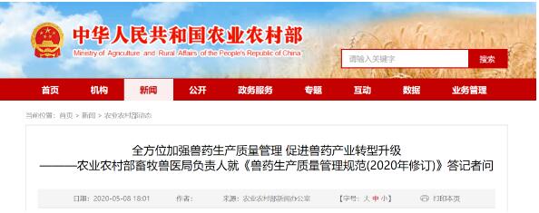 近期,農業農村部發布《獸藥生產質量管理規范(2020年修訂)》(以下簡稱“新版獸藥GMP”)。記者就相關問題采訪了農業農村部畜牧獸醫局負責人。獸藥生產質量管理規范(獸藥GMP)是獸藥生產管理和質量控制的基本要求和準則,是世界各國對獸藥生產全過程監督管理普遍采用的法定技術規范。獸藥生產是一個十分復雜的過程,涉及到許多環節和管理,任何一個環節疏忽都有可能導致產品質量問題。為加強獸藥生產質量管理,2002年,原農業部頒布實施了獸藥GMP。通過實施獸藥GMP,從人員、廠房、設備、物料、文件、生產過程、產品銷售、自檢等全過程、全方位規范獸藥生產行為,確保獸藥產品質量安全,對促進獸藥行業健康發展、維護動物產品質量安全發揮了重要作用。