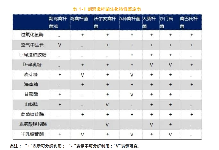 表 1-1 副雞禽桿菌生化特性鑒定表