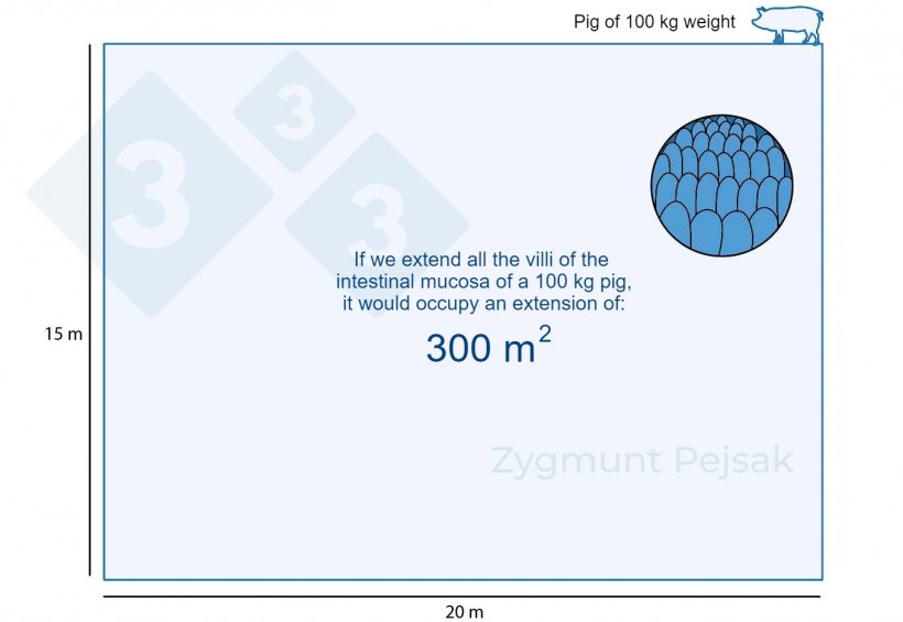 圖1. 100公斤育肥豬的腸粘膜面積約為300平方米