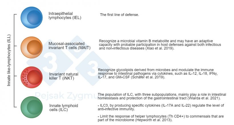 圖2. 在GALT中,我們可以區(qū)分出幾個關(guān)鍵的群體:先天類淋巴細(xì)胞(ILL)位于小腸,在較小程度上位于大腸,作為細(xì)胞因子、細(xì)胞毒分子和抗菌肽的生產(chǎn)者發(fā)揮重要作用(Hepworth et al., 2013;Sch?fer等,2019;Wiarda等人,2020;Wiarda等人,2021;肖等人,2019) 當(dāng)免疫系統(tǒng)細(xì)胞識別病原體時(shí),就會觸發(fā)免疫反應(yīng),病原體會導(dǎo)致促炎細(xì)胞因子、TGF β和其他介質(zhì)迅速釋放到周圍的組織和血液中。細(xì)胞因子向效應(yīng)細(xì)胞提供感染部位的信息,效應(yīng)細(xì)胞幫助清除病原體。 與動物環(huán)境相關(guān)的應(yīng)激,由于IL-10的上調(diào),導(dǎo)致腸道屏障受損,引起腸道免疫反應(yīng)的免疫抑制(Li et al.,2017),從而降低生產(chǎn)效率,增加疾病發(fā)病率(Peng et al.,2021)。 免疫應(yīng)激被定義為動物機(jī)體的長期免疫動員,與抵御來自不利環(huán)境條件(包括病原體)的持續(xù)應(yīng)激有關(guān)。長期免疫應(yīng)激對動物發(fā)育的負(fù)面影響,包括較高的發(fā)病率和死亡率,飼料轉(zhuǎn)化率(FCR)的降低,以及同年齡豬組之間的體重差異,其相關(guān)機(jī)制仍不完全了解。然而,眾所周知,先天免疫系統(tǒng)是宿主抗感染防御的第一道防線的一部分。表皮和粘膜上皮的屏障構(gòu)成了對致病因素的第一道屏障。 當(dāng)病原體致病性強(qiáng)或大量存在時(shí),或當(dāng)屏障被破壞時(shí),就有可能打破這些屏障并感染宿主。打破這種屏障的微生物通過來自細(xì)菌、病毒、真菌和原生動物的toll樣受體(TLRs)的病原體相關(guān)分子模式(PAMPs)被免疫系統(tǒng)細(xì)胞識別。TLRs在巨噬細(xì)胞、樹突狀細(xì)胞、肥大細(xì)胞、NK細(xì)胞以及T和B淋巴細(xì)胞上表達(dá),可將病原體與死亡和失活(碎片)元素區(qū)分開來(Mair et al.,2014)。TLRs的激活是激活先天和獲得性免疫反應(yīng)的關(guān)鍵信號,并伴隨著免疫細(xì)胞的大量增殖和免疫球蛋白、細(xì)胞因子、趨化因子、急性期蛋白和許多其他物質(zhì)的產(chǎn)生對抗病原體。 在免疫應(yīng)激期間,代謝優(yōu)先級主要是肝臟產(chǎn)生APP。急性期蛋白包括在組織損傷后血漿中濃度至少增加20%的蛋白。APP的首要作用是恢復(fù)機(jī)體內(nèi)環(huán)境穩(wěn)態(tài)。APP活化的一個負(fù)面后果是分解代謝增加導(dǎo)致體重減輕。這與受刺激的白細(xì)胞分泌的細(xì)胞因子持續(xù)高水平有關(guān)。細(xì)胞因子的過量產(chǎn)生會加劇體重減輕,這些細(xì)胞因子會導(dǎo)致情緒和行為的變化,導(dǎo)致虛弱,有時(shí)甚至缺乏食欲(Dantzer等人,2008;Chaytor等人,2011;McKim等人,2018;Munshi等人,2019)。