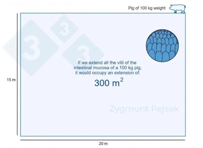 圖1. 100公斤育肥豬的腸粘膜面積約為300平方米