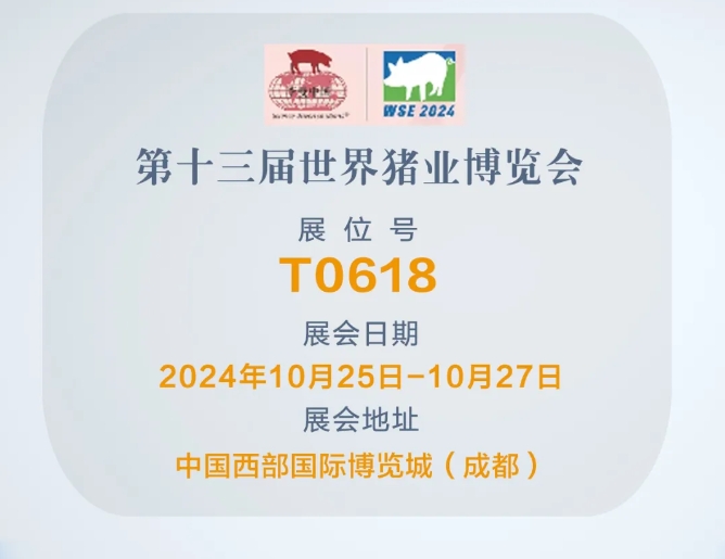 2024年10月25日-27日, 第十三屆世界豬業博覽會將在中國西部國際博覽城(成都)召開,值此展會到來之際,華辰制藥在此誠邀您蒞臨展位參觀,共同交流。
