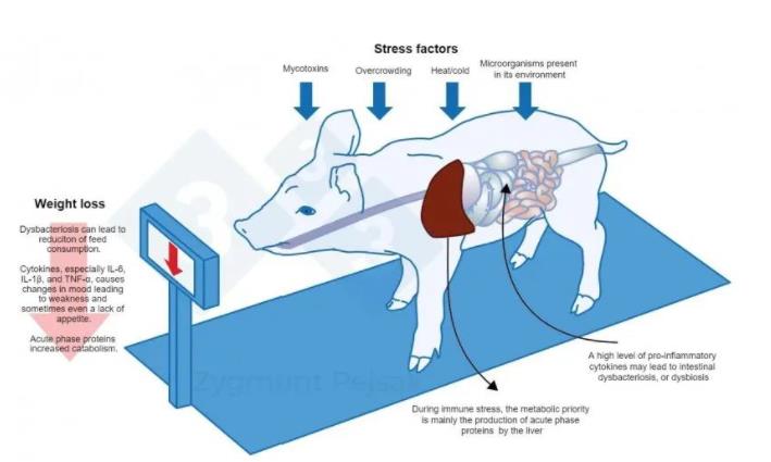 01胃腸道內與應激相關的免疫反應的變化動物的機體和周圍的生態系統必須保持平衡。預防腸粘膜巨大表面的慢性炎癥過程(100公斤的育肥豬有大約300平方米)尤為重要。圖1. 100公斤育肥豬的腸粘膜面積約為300平方米腸道相關淋巴組織(GALT)位于胃腸道上皮下,是免疫系統最大的堡壘。作為GALT的一部分,免疫細胞的功能是對微生物或其毒素的入侵做出快速而強烈的反應,并限制對非致病因素的反應范圍,以防止免...
