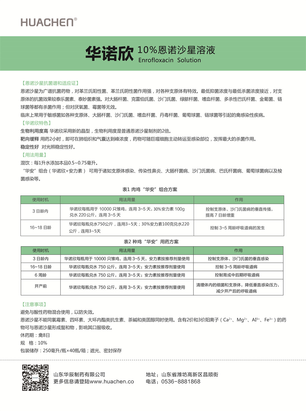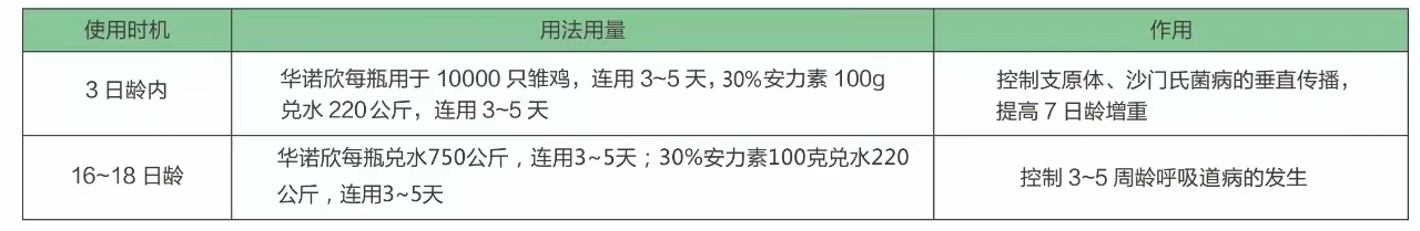 “華安”組合(華諾欣+安力素)可用于諸如支原體感染、傳染性鼻炎、大腸桿菌病、沙門氏菌病、巴氏桿菌病、葡萄球菌以及梭菌感染等。