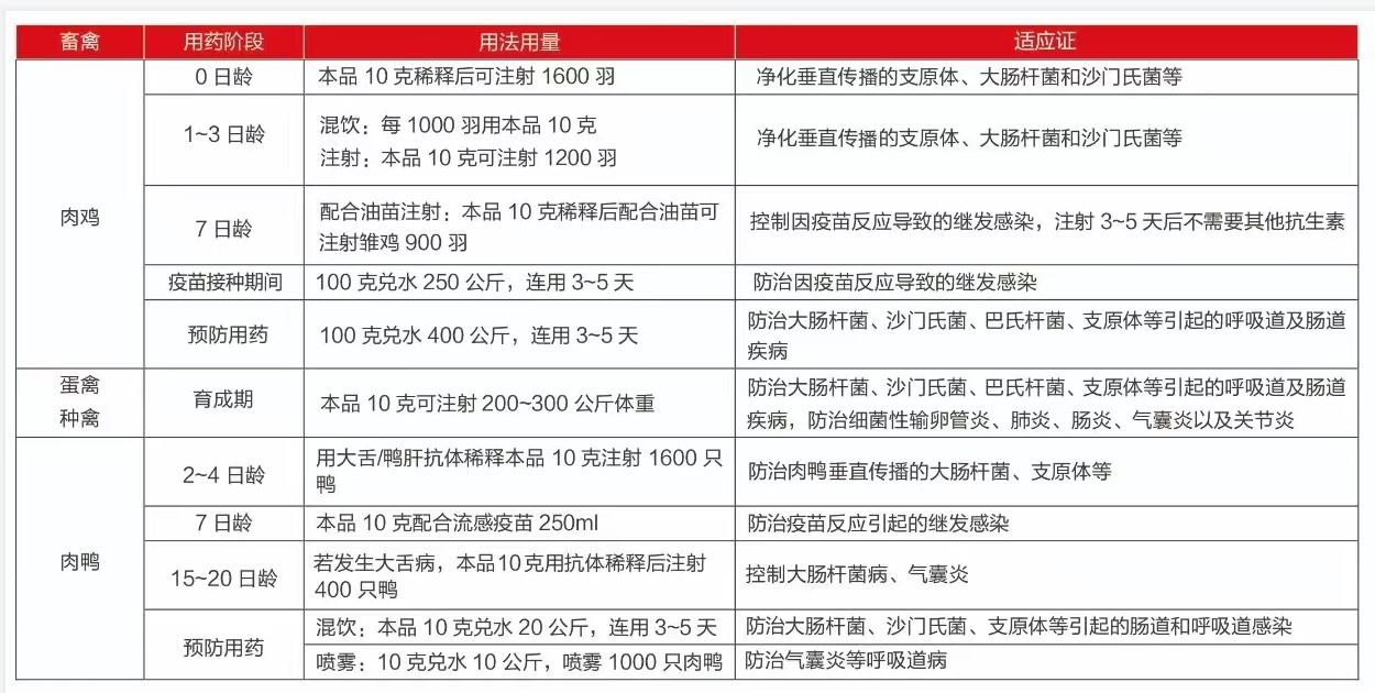 1、廣譜:同時殺滅各種支原體、大腸桿菌等致病菌。